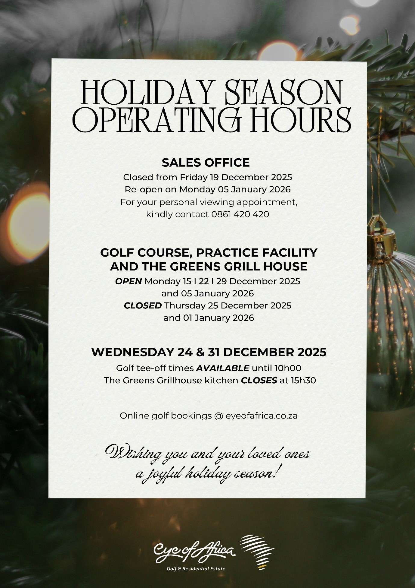 Find out about the upcoming events and news at Eye of Africa Golf Estate.