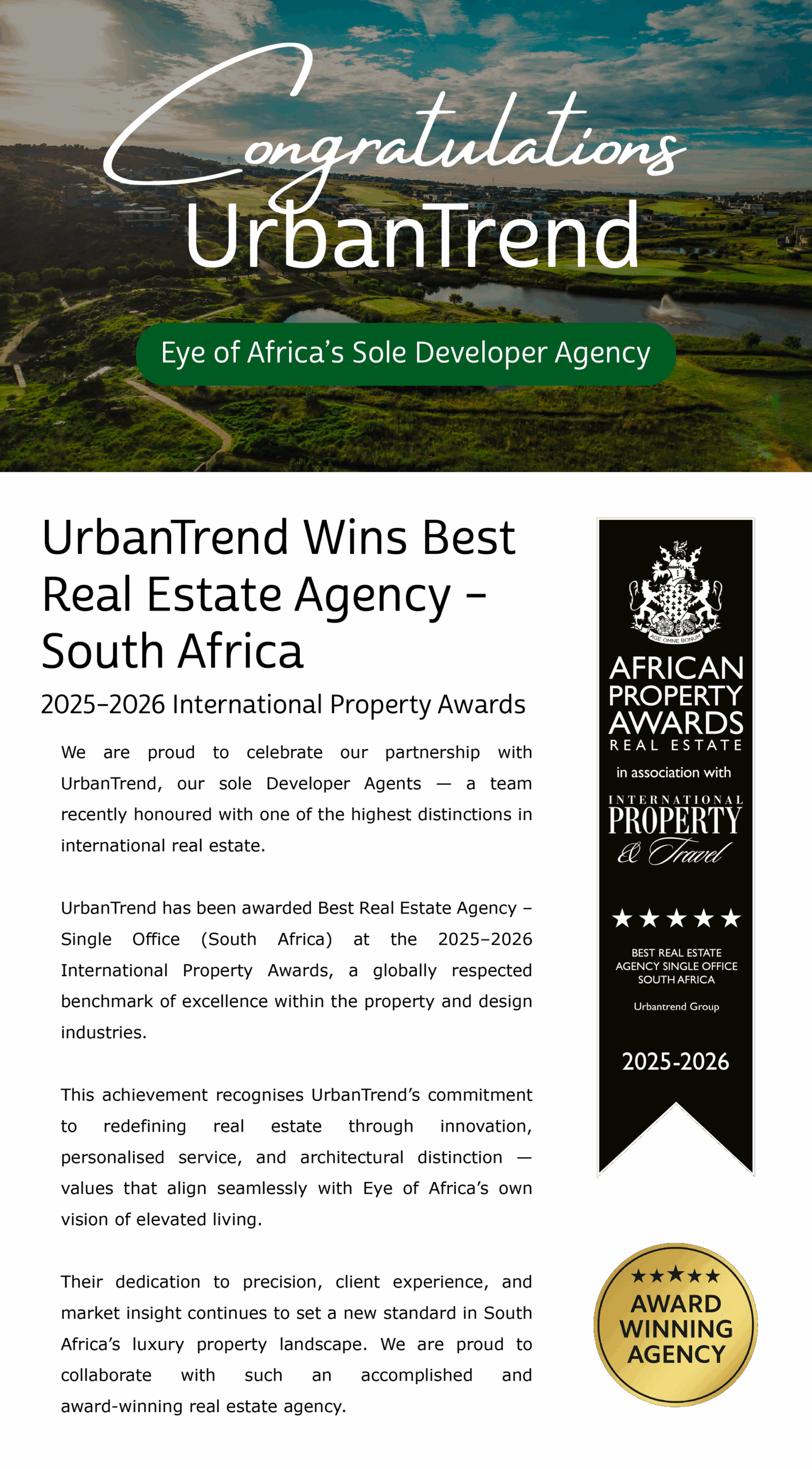 Eye of Africa is more than a location; itβs one of South Africaβs best lifestyles.