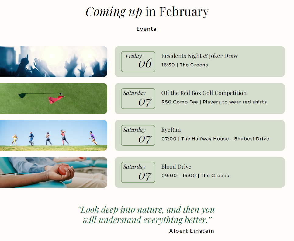 February is shaping up to be an exciting month at Eye of Africa. With strong interest in the estate and a growing sense of community, we continue to see families, investors and lifestyle buyers choosing Eye of Africa as home.